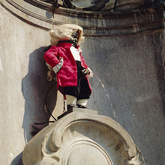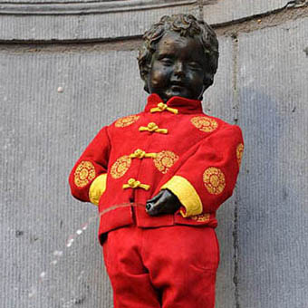 由于受歡迎,各方都喜歡送這個小男孩衣服,第一件來自法王路易十五。現(xiàn)在,各國元首出訪比利時送他一套本國傳